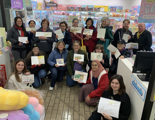 As you can see from the header, we had a decent turnout for this sketchout....especially considering that we had to make a last minute change in venue. It seems that the St. Patrick's Day parade was taking up all of Allen Parkway and everything around it, so we made a quick adjustment and went across the bayou to the Old Sixth Ward. Never fear, we will revisit the skate park another time.