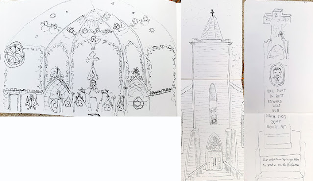 I climbed into the choir loft and tried to get the entire sanctuary. Susan and I both found that we had to go to colored pencil for the smallest details. There was just so much to draw! |